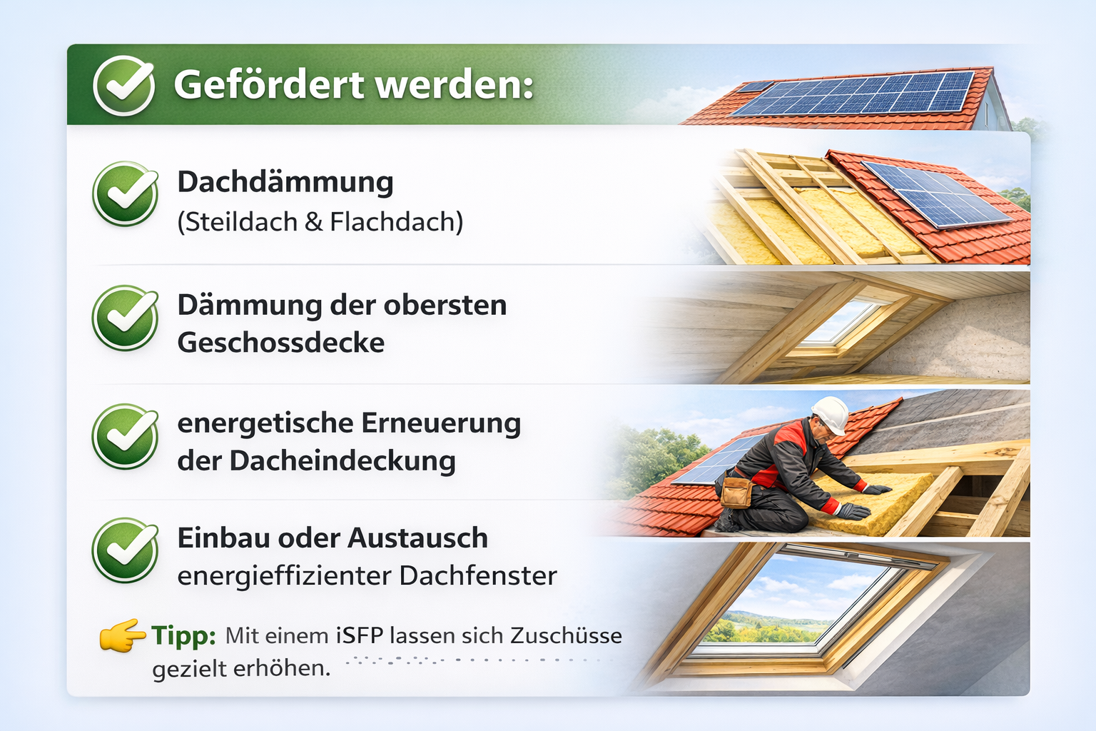 Welche Dachmaßnahmen sind förderfähig?